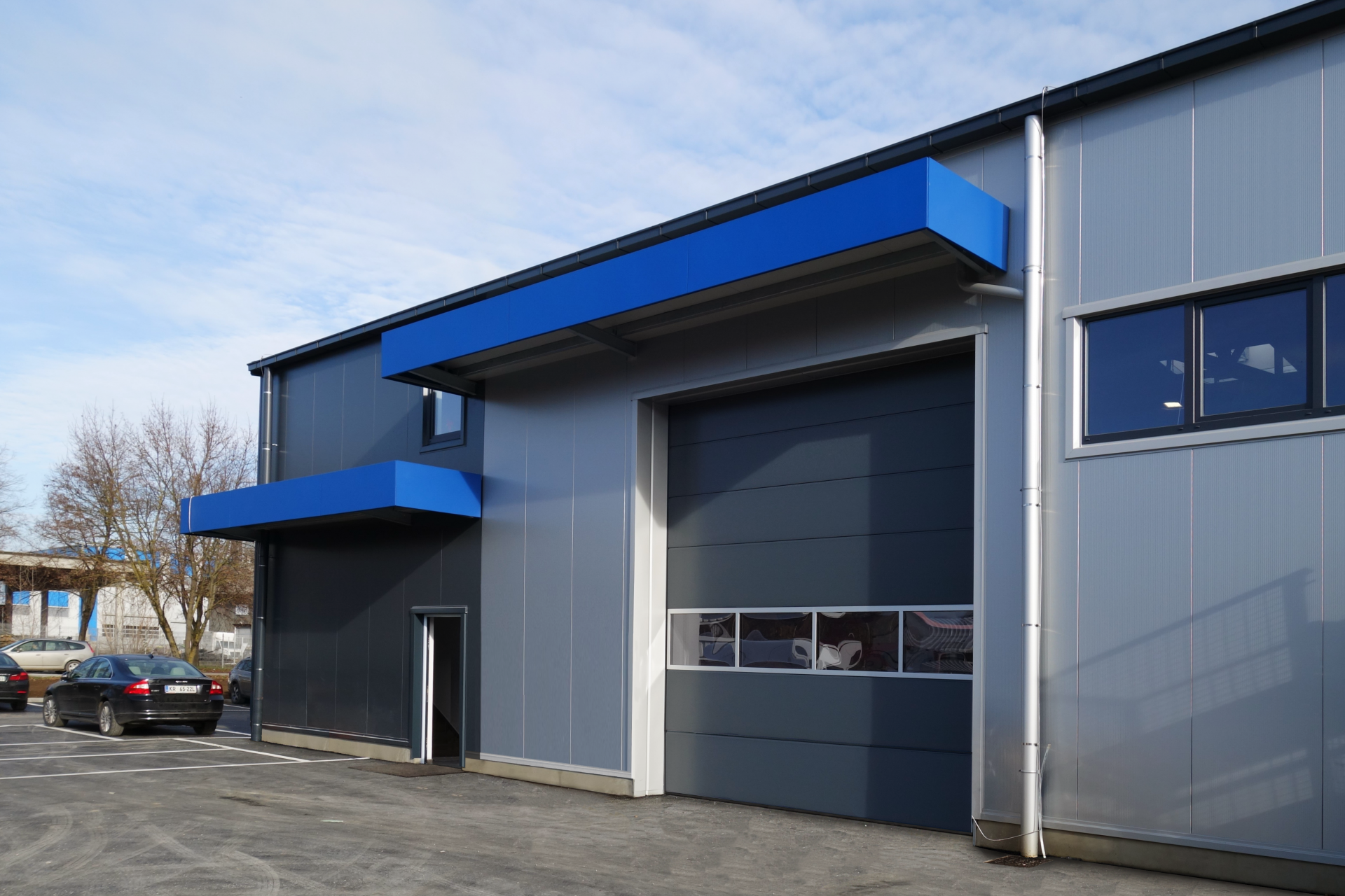 The facility is made entirely of hot-dip galvanized steel structure, to which insulation roof and wall panels of 100 mm are attached (filling: mineral wool). The building has two transverse partitions. Most of its plan is single storey with two storey section of 6.5 m in length and full building width. There are four light domes on the roof and windows in different designs on the walls. There are two personal entrances and freight entrances (automatic sectional doors) at the front and side of the building.